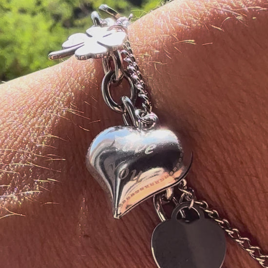 Aggiungi un tocco di fortuna e amore al tuo stile con il nostro Bracciale Portafortuna a Charm. Realizzato in acciaio inossidabile di alta qualità, questo bracciale è progettato per durare nel tempo senza perdere la sua lucentezza.