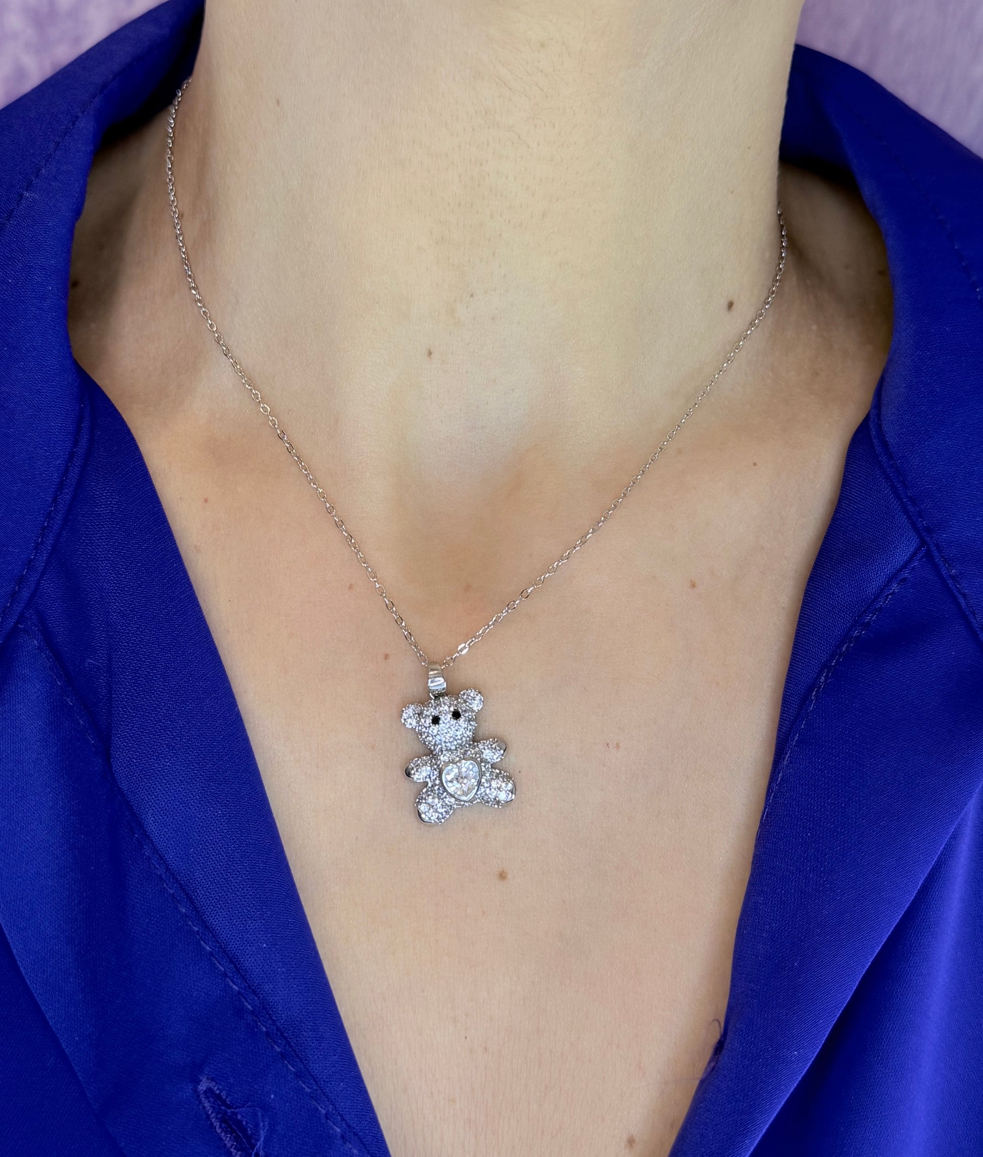 Design: Ciondolo a forma di orsetto con zirconi e cuore centrale