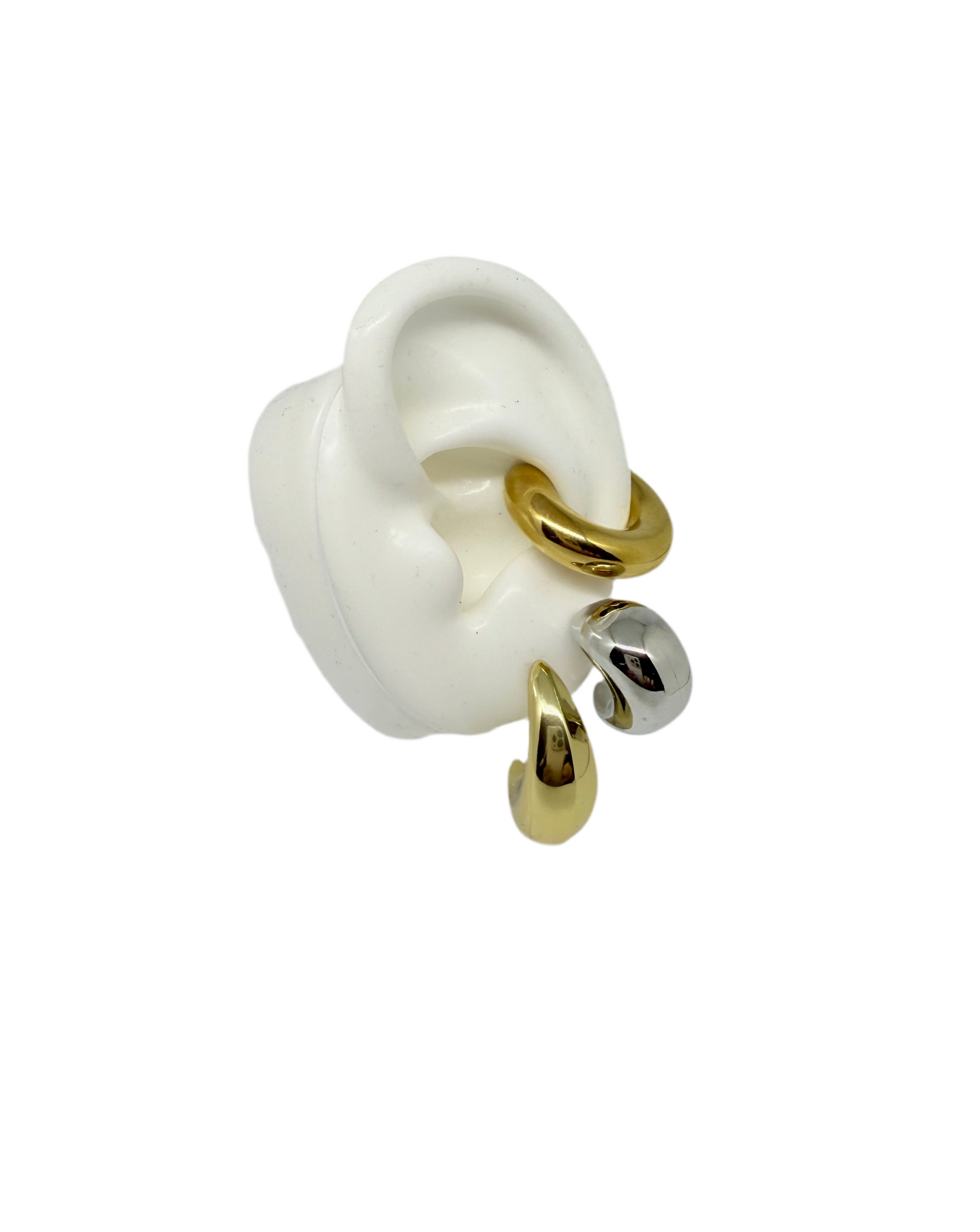 Un ear cuff deciso e moderno, pensato per chi ama distinguersi con stile. Il suo design bombato e pulito si adatta perfettamente alla parte alta dell’orecchio, senza necessità di fori. Realizzato in acciaio inossidabile, è disponibile sia nella versione dorata che argentata, per completare ogni look con un tocco minimal ma d’impatto.