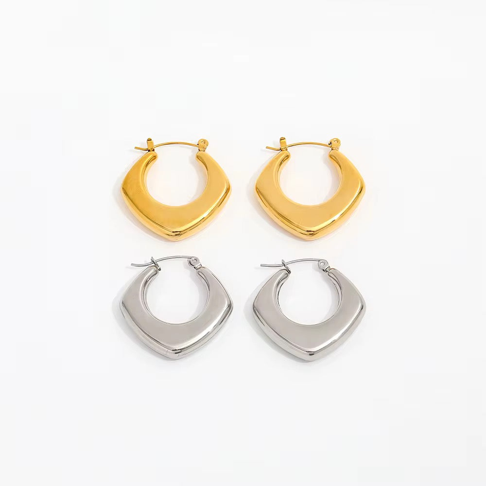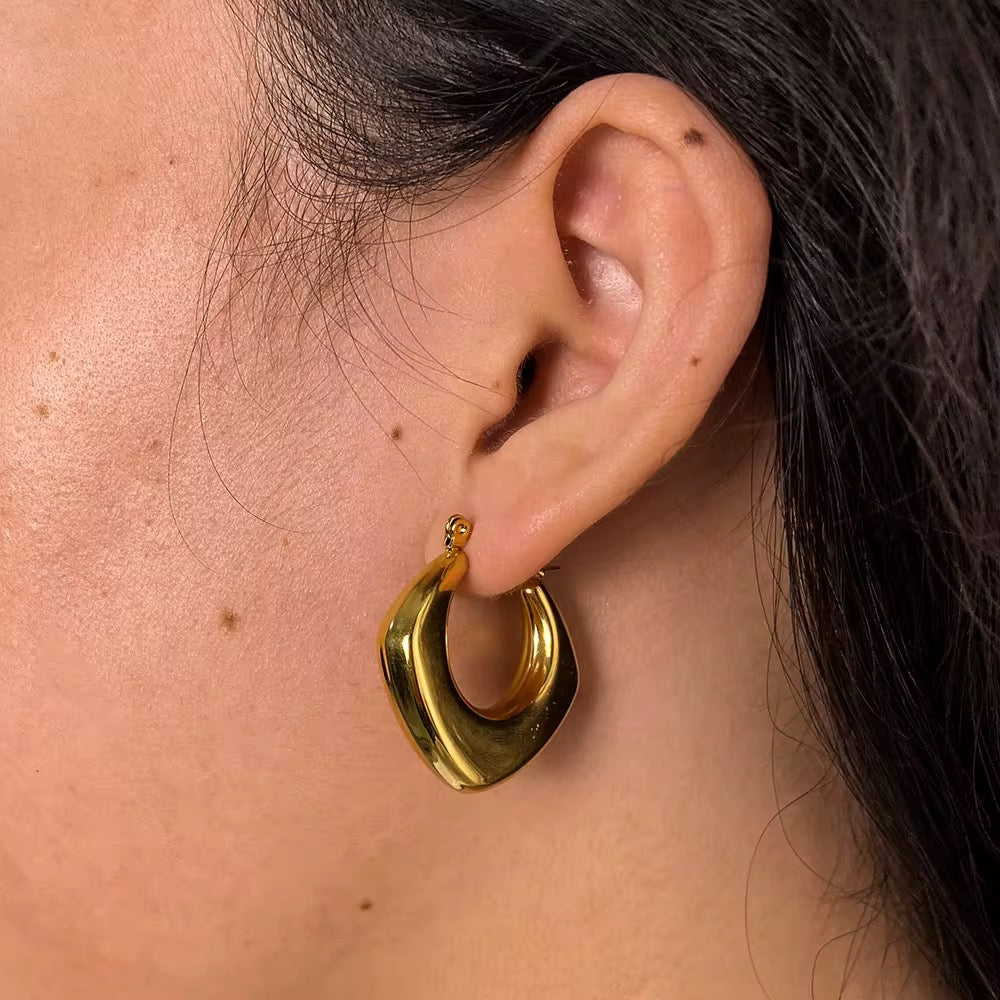 Non rinunciare all'impatto! I nostri Orecchini a Cerchio "Chunky Chic" sono il gioiello che stavi cercando per aggiungere una nota di audacia e modernità al tuo look. Caratterizzati dalla forma piena e geometrica a rombo/quadrata, questi orecchini sono un vero e proprio statement piece.