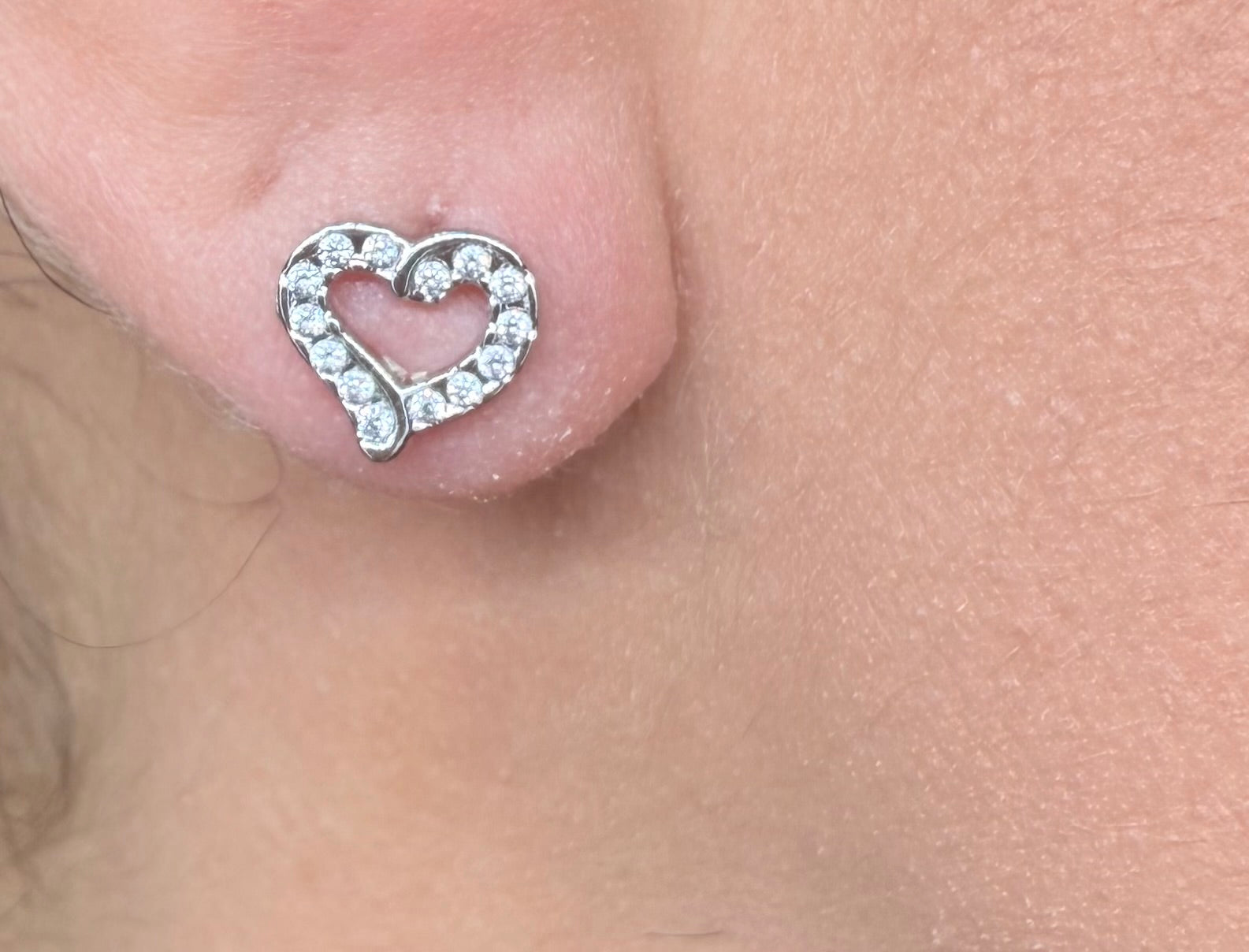 Orecchini a forma di cuore, leggeri e luminosi, perfetti per aggiungere un tocco romantico e raffinato a ogni look. La linea curva e i piccoli zirconi brillanti creano un effetto delicato e prezioso, ideale da indossare tutti i giorni o per un’occasione speciale.