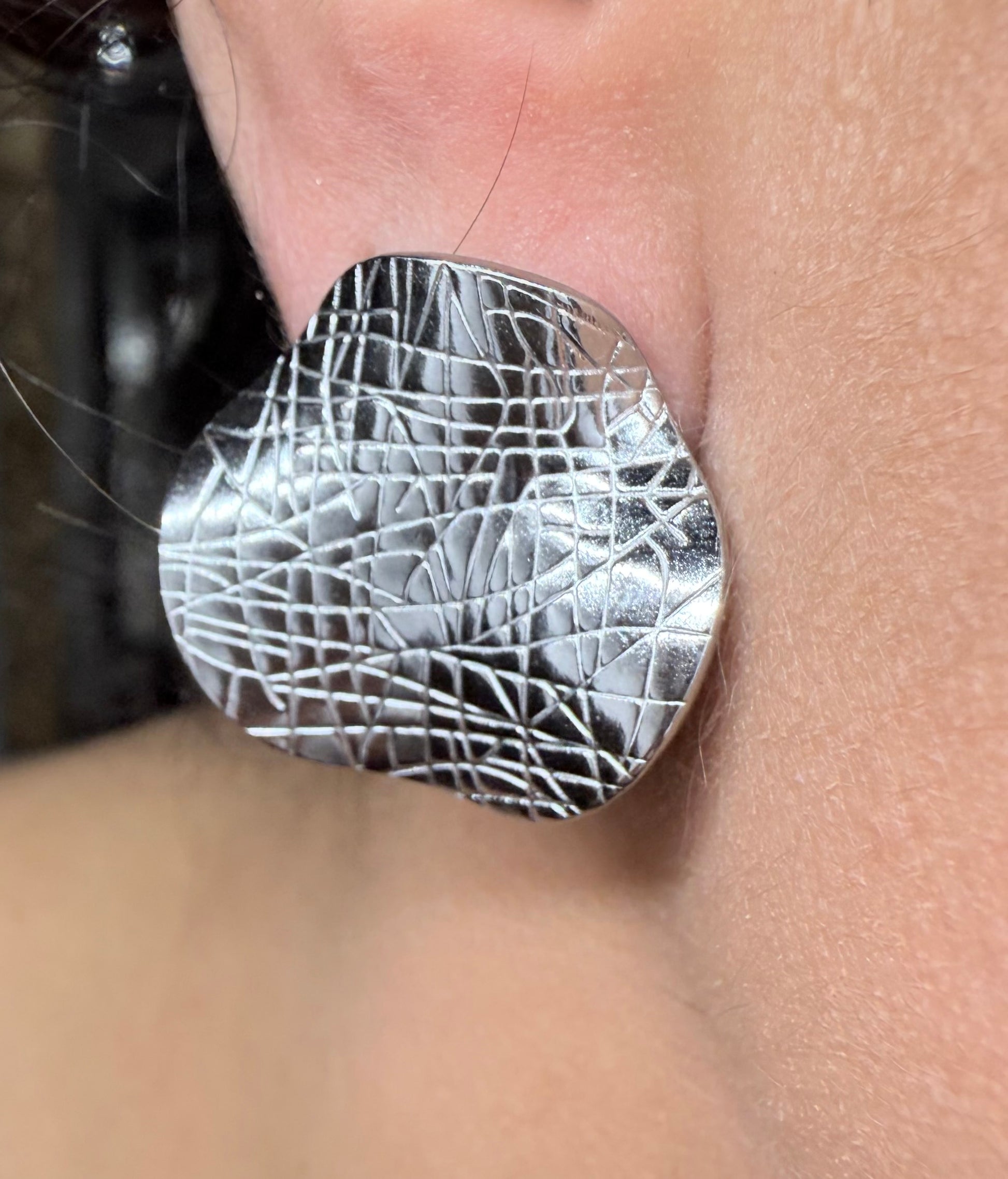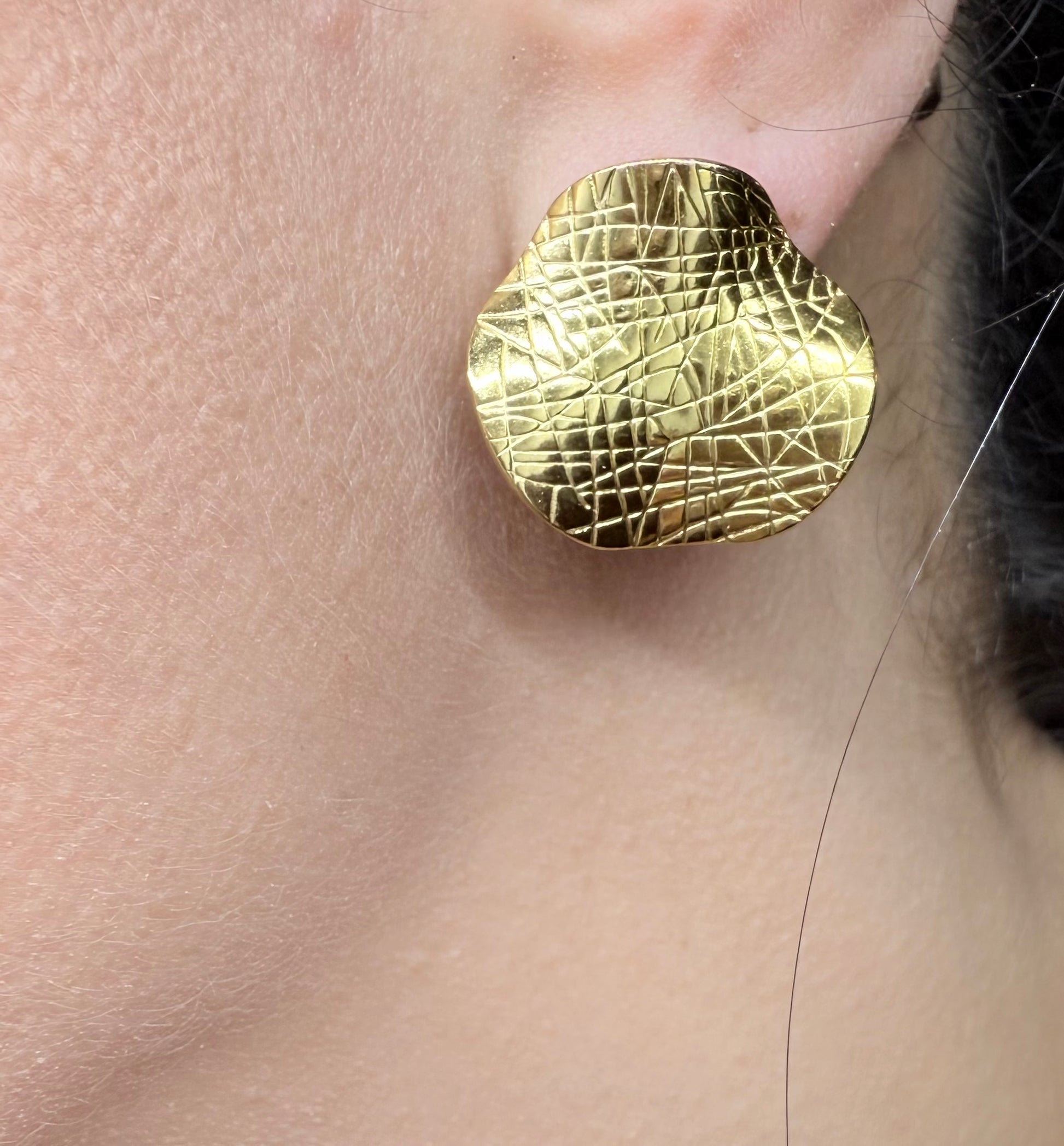 Orecchini Petra in acciaio 316L con lavorazione effetto martellato. Disponibili in versione silver o gold.