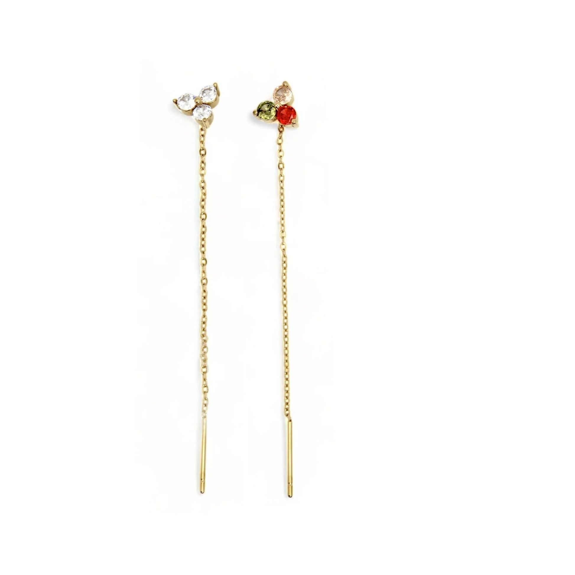 Orecchini a punto luce con pendente saliscendi da 6,5 cm, in acciaio inossidabile e cubic zirconia. Waterproof, ipoallergenici e luminosi come diamanti.