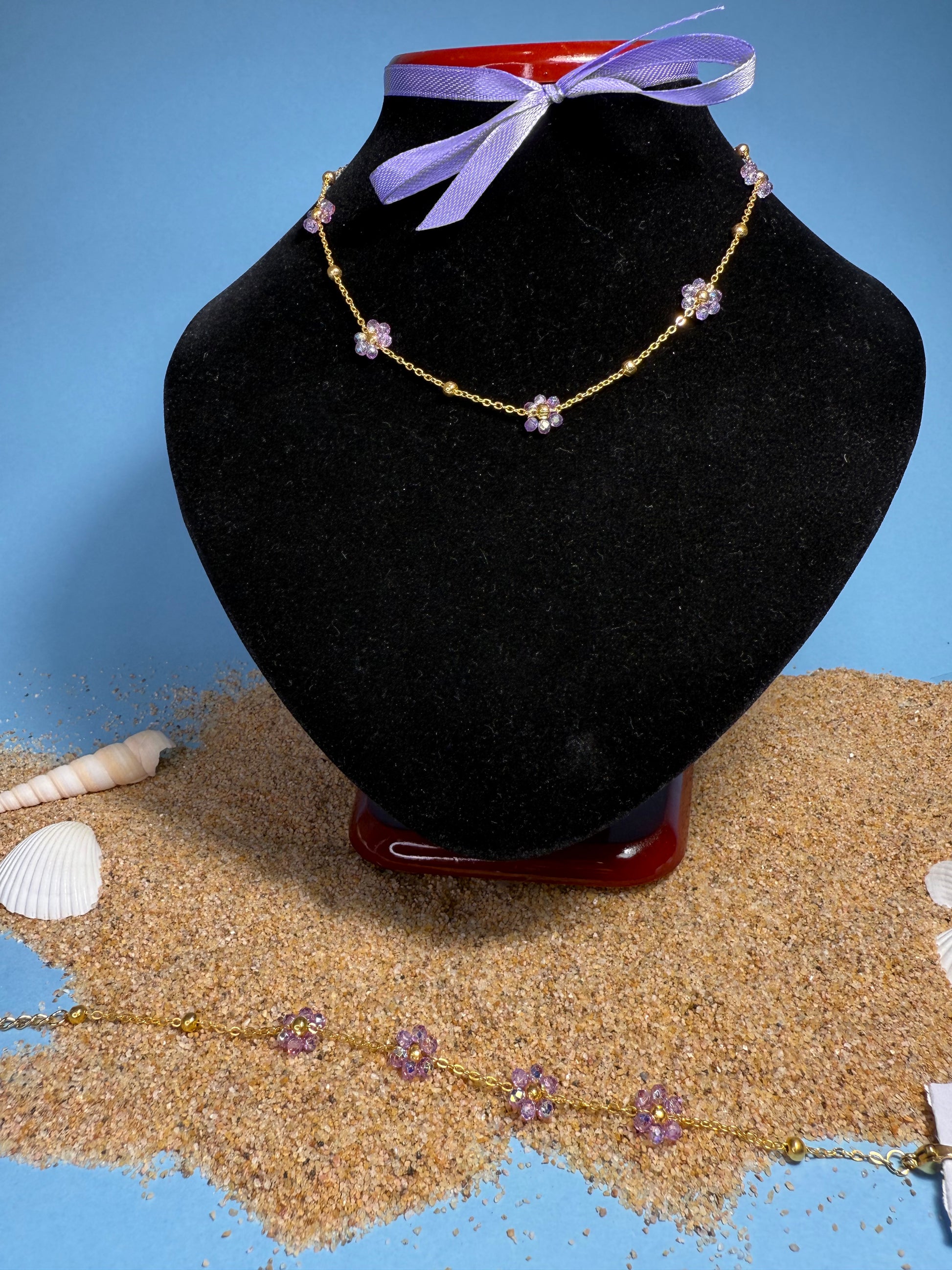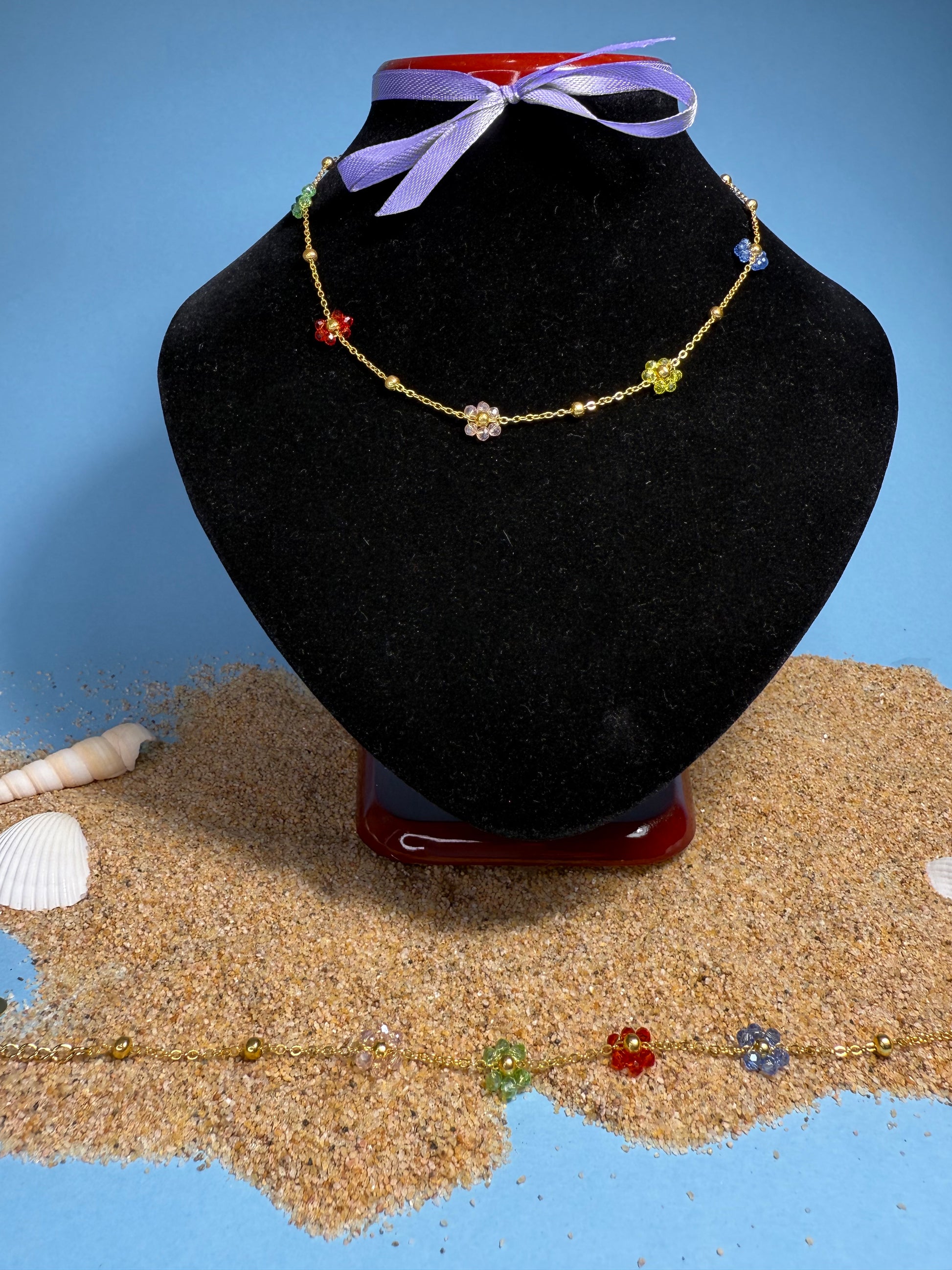 Delicato, colorato e leggero come un fiore. Il Set Margherita è composto da collana e bracciale coordinati, impreziositi da piccoli fiori in vetro a forma di margherita montati su catena dorata in acciaio inossidabile. Un gioiello che unisce eleganza e spensieratezza, perfetto per ogni stagione e occasione.
